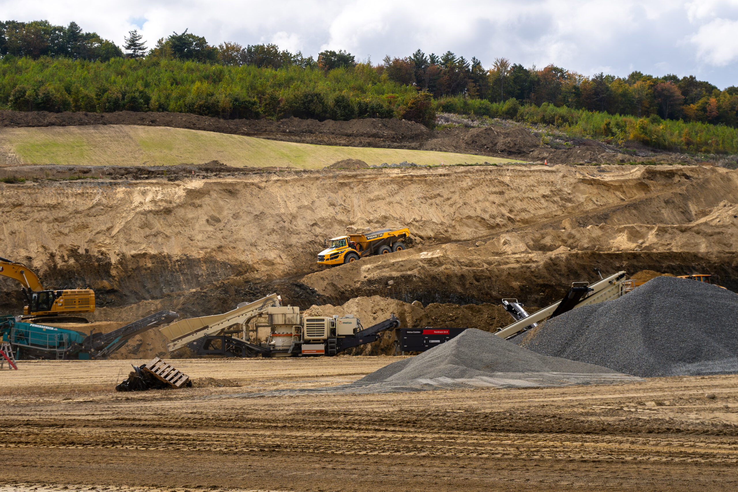 Onyx partnered with Powell Stone and gravel to assist in the site work associated with a 600,000-sf distribution facility on a 50 acre site at Theodore Drive in Westminster, MA. The project dubbed “Project Sandbox” included loading and hauling earth, crushing materials, culvert installation, and blast rock wall construction. Onyx also worked with subcontractors for drilling and blasting and block wall construction. Construction began in August 2024, and Onyx worked diligently through the winter months to stay on the project schedule. The Onyx scope of work was completed in mid-August 2025.
